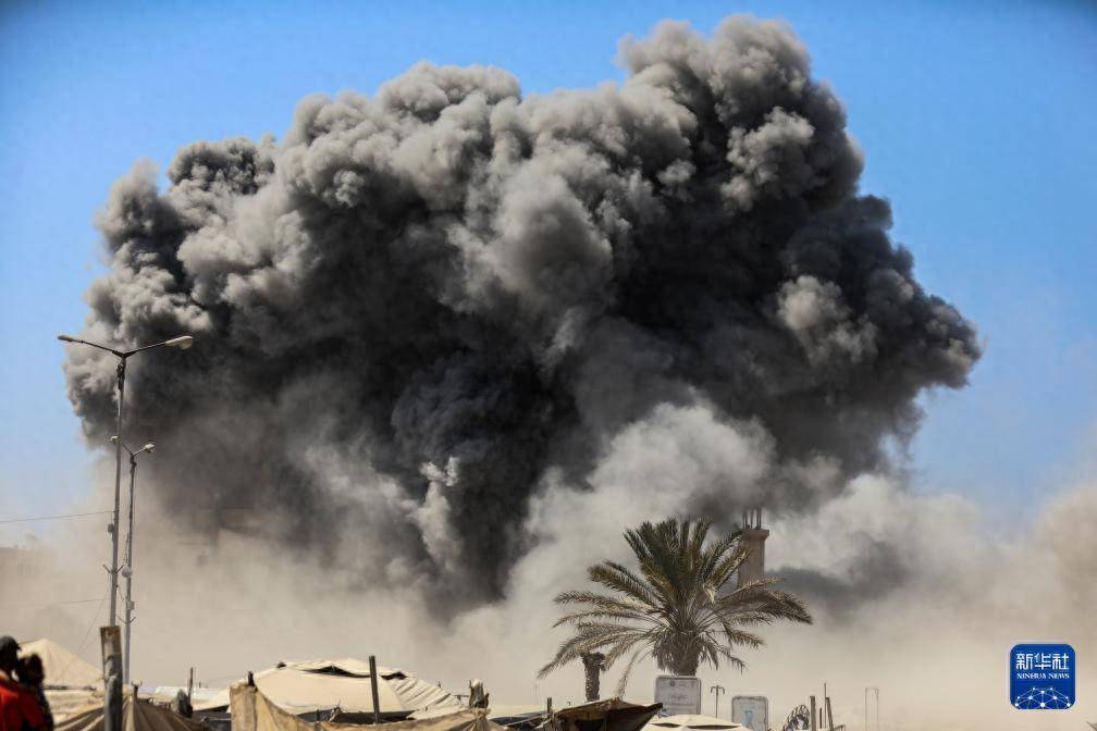 9月5日,加沙城一栋建筑遭以色列军队空袭后升起浓烟。新华社发(里泽克·阿卜杜勒贾瓦德摄)