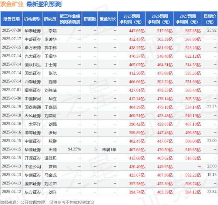 中国银河证券股份有限公司华立,孙雪琪近期对紫金矿业进行研究并发布了研究报告《2025年半年报点评:增长韧性持续凸显,业绩再创新高》,给予紫金矿业买入评级。