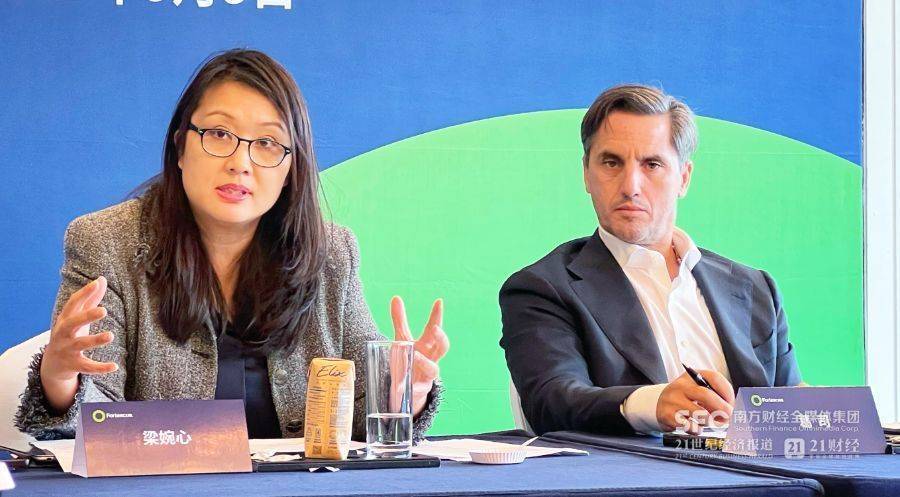 福德士河集团首席财务官梁婉心(左)、福德士河集团业务增长及能源业务首席执行官葛司(右)接受21世纪经济报道采访
